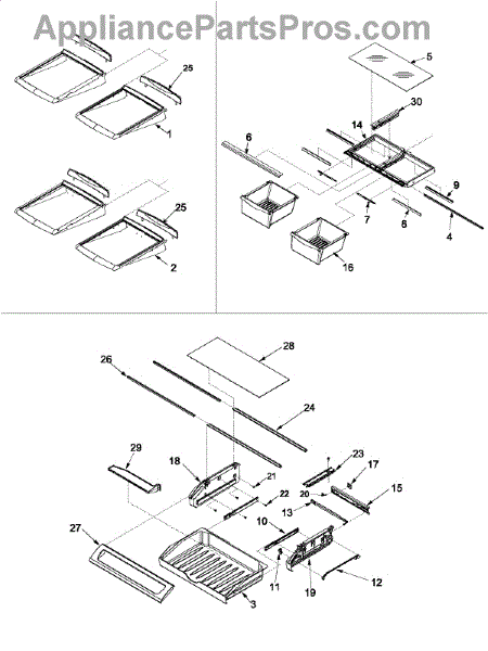 Storage drawer for deli items and fresh foods in the refrigerator compartment. Replace if cracked, broken, or missing. Includes rails and endcaps.