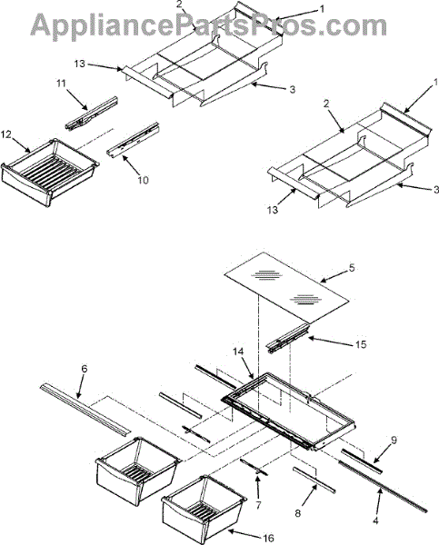 Note: For the right side drawer glide, use part number WP67001053