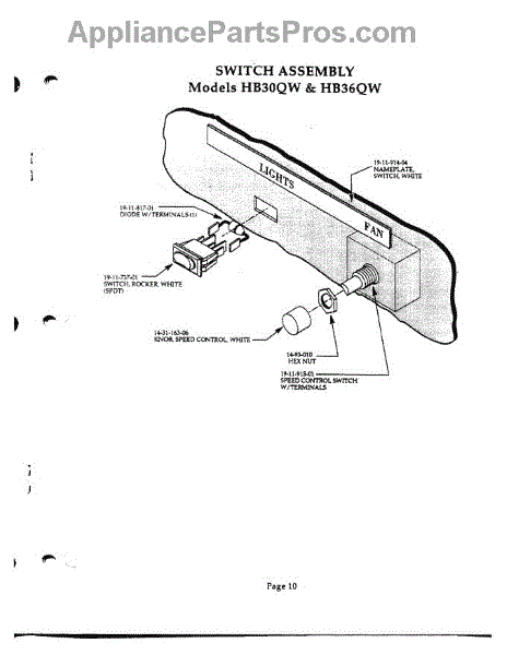 Parts for Thermador HB30QW: 10 - Switch Assembly Parts
