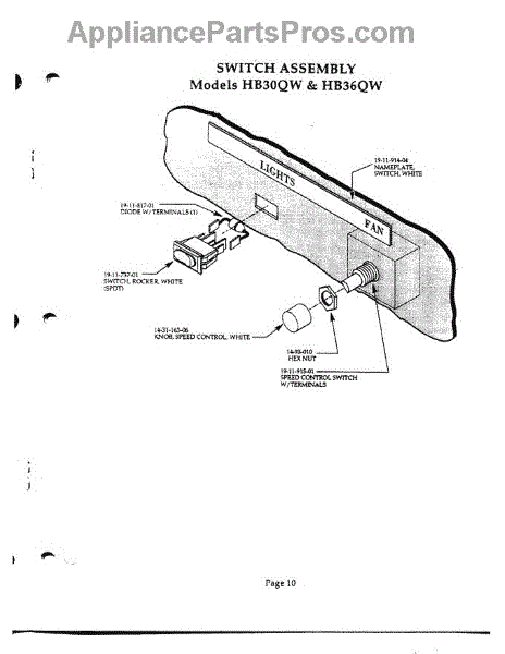 Parts for Thermador HB36QW: 10 - Switch Assembly Parts
