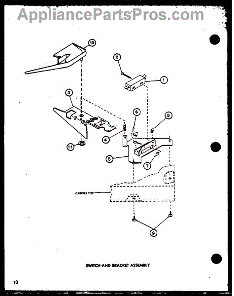 Parts for Amana LWD353 / P7762115W W: 10 - Switch And Bracket Assy Parts