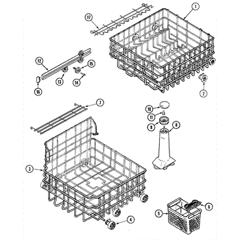 This is an upper dish rack assembly for dishwashers. It is located in the top section of the dishwasher and is meant to ensure dishes stay in place while the dishwasher is running. The dish rack assembly is durable but can experience damage, stains, or other issues. This may make it unsuitable for holding dishes in the appliance. If the part is damaged or malfunctioning, it should be replaced with a new part.This is a simple replacement that takes only a few minutes to complete. First, open up the dishwasher. Remove the bottom rack if desired to create more room to work with the upper dish rack assembly. Take a small flathead screwdriver and use it to release the retaining tabs located on the stop clips. Remove the stop clips and the old dish rack assembly will slide out. Align the new assembly and slide it into place before reassembling other small parts.This upper dish rack assembly is used as an authentic OEM replacement part for dishwashers manufactured by Maytag, Norge, Jenn Air, Admiral, Amana, Crosley, and Magic Chef. The part is sold as an individual component.