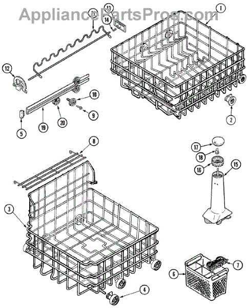 This is an upper dish rack assembly for dishwashers. It is located in the top section of the dishwasher and is meant to ensure dishes stay in place while the dishwasher is running. The dish rack assembly is durable but can experience damage, stains, or other issues. This may make it unsuitable for holding dishes in the appliance. If the part is damaged or malfunctioning, it should be replaced with a new part.This is a simple replacement that takes only a few minutes to complete. First, open up the dishwasher. Remove the bottom rack if desired to create more room to work with the upper dish rack assembly. Take a small flathead screwdriver and use it to release the retaining tabs located on the stop clips. Remove the stop clips and the old dish rack assembly will slide out. Align the new assembly and slide it into place before reassembling other small parts.This upper dish rack assembly is used as an authentic OEM replacement part for dishwashers manufactured by Maytag, Norge, Jenn Air, Admiral, Amana, Crosley, and Magic Chef. The part is sold as an individual component.