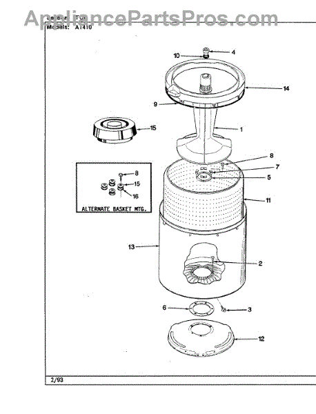 Parts for Hoover A1410: 10 - Tub (Rev. E) Parts