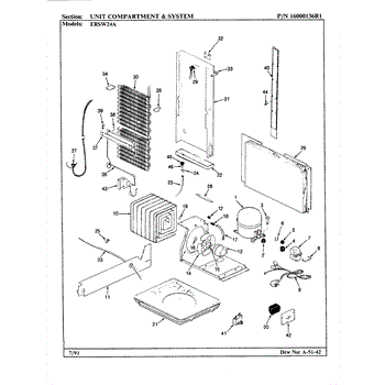 Plastic defrost pan. Evaporator pan hangs from side rails and rests on compressor.