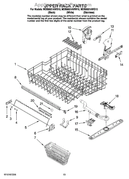 Upper dishwasher rack adjuster assembly. Right hand side. For the left hand side order WPW10153530.