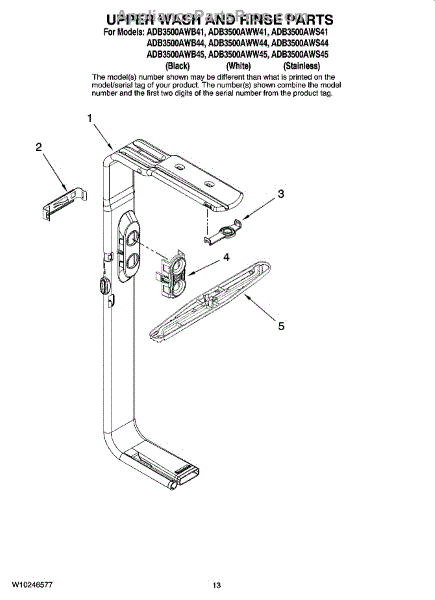 Parts for Maytag ADB3500AWW45: 10 - Upper Wash And Rinse Parts, Optional Parts (Not Included) Parts