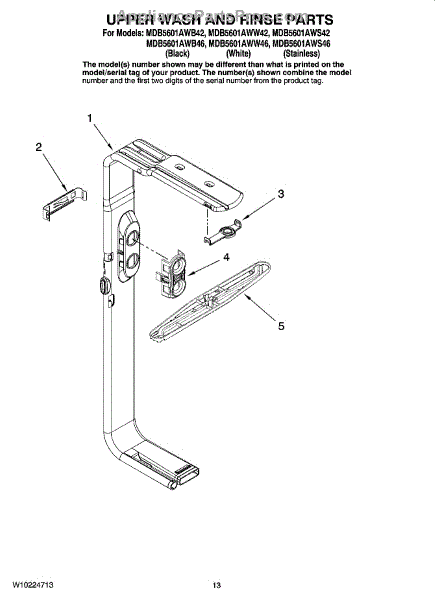 Parts for Maytag MDB5601AWW42: 10 - Upper Wash And Rinse Parts, Optional Parts (Not Included) Parts