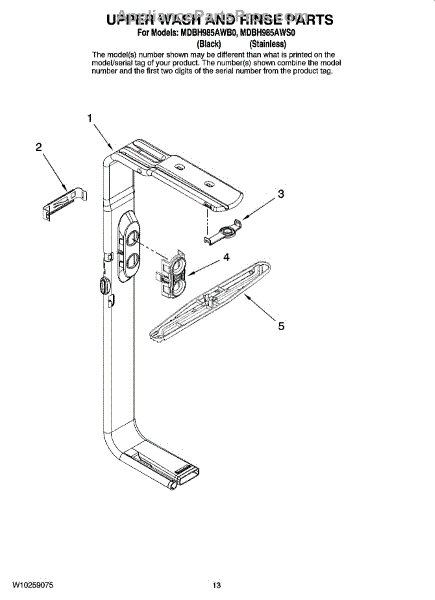 Parts for Maytag MDBH985AWS0: 10 - Upper Wash And Rinse Parts