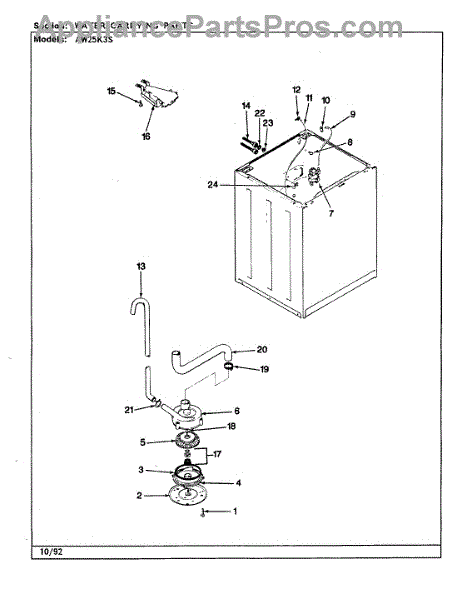 The Washer Tub to Pump Hose is an OEM part for Whirlpool washing machines. This hose connects the washer tub to the drain pump, facilitating the proper drainage of water from the tub during the wash and spin cycles.