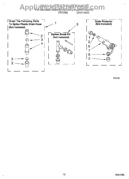 • Stops backflow/siphoning from the household drain into the dishwasher