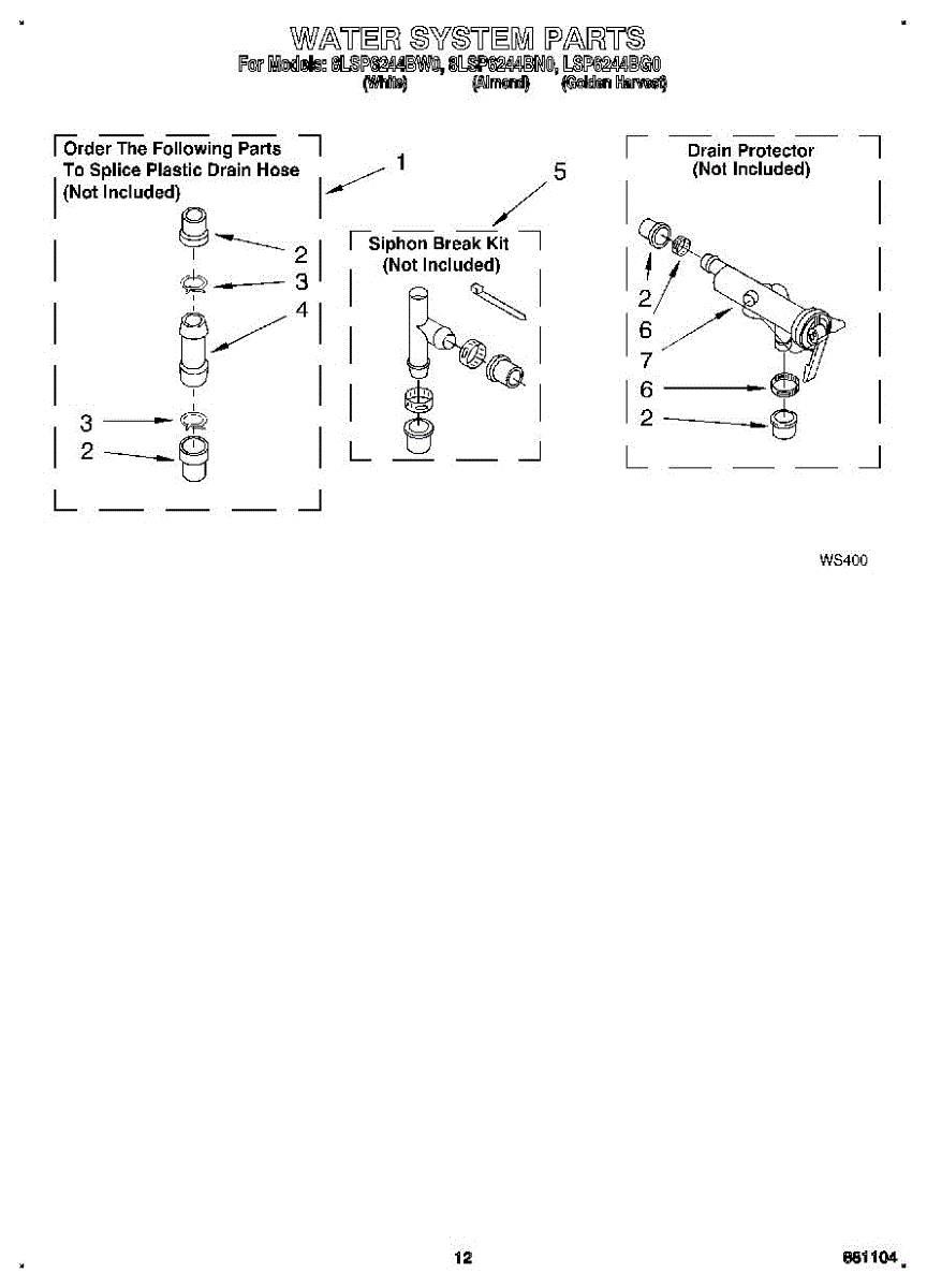 Parts for Whirlpool 8LSP6244BG0: 10 - Water System Parts