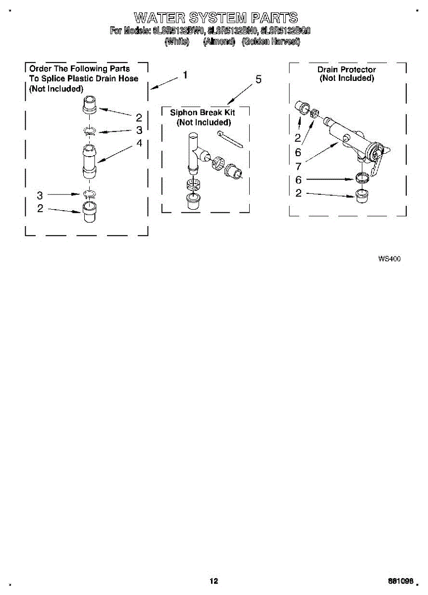 Parts for Whirlpool 8LSR5132BG0: 10 - Water System Parts