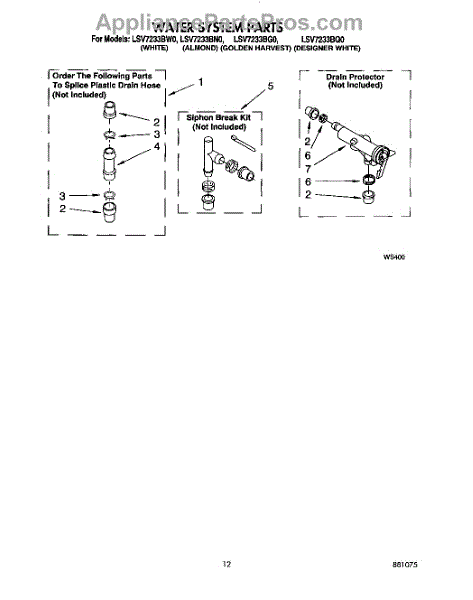 Parts for Whirlpool LSV7233BQ0: 10 - Water System Parts