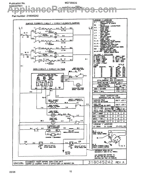Parts for Frigidaire MEF355CGB1: 10 - Wiring Diagram Parts