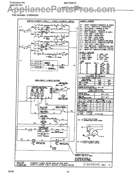 Parts for Frigidaire MEF367CGB1: 10 - Wiring Diagram Parts