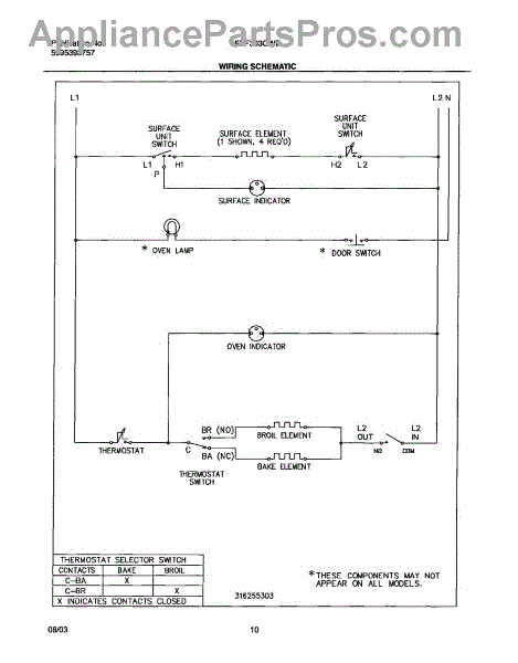 Parts for Frigidaire FEF303CWB: 10 - Wiring Schematic Parts
