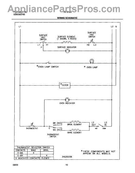 Parts for Frigidaire FEF316BSB: 10 - Wiring Schematic Parts