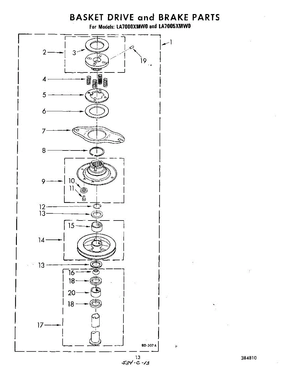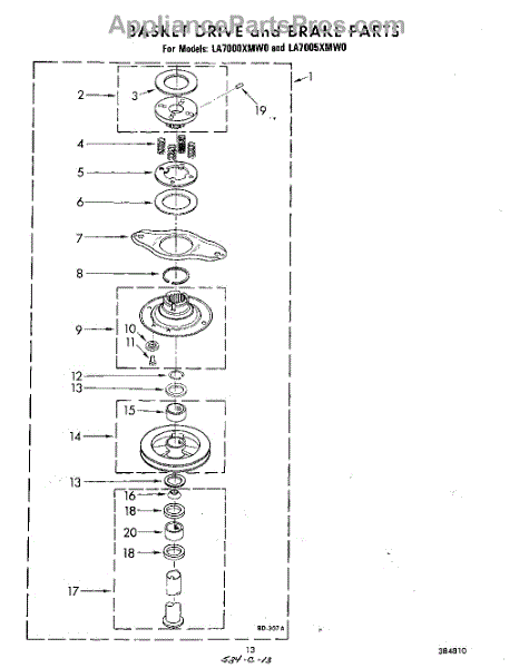 Parts for Whirlpool LA7005XMW0: 11 - Basket Drive And Brake Parts