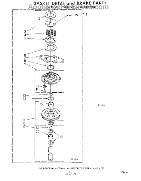 Parts for Whirlpool LA7005XPW0: 11 - Basket Drive And Brake Parts