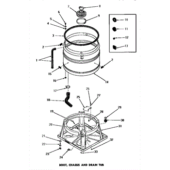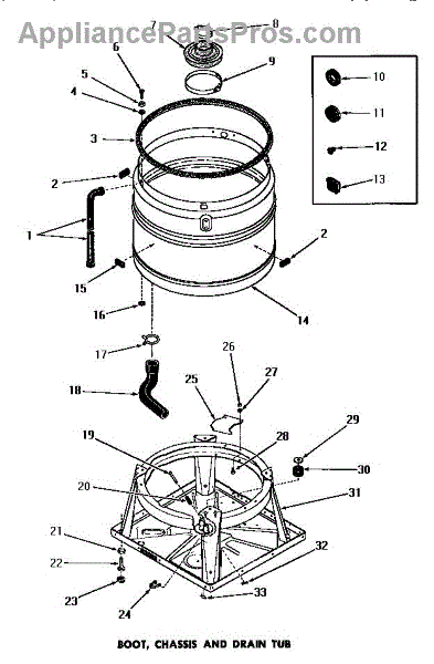 Parts for Amana DA6223: 11 - Boot, Chassis & Drain Tub Parts