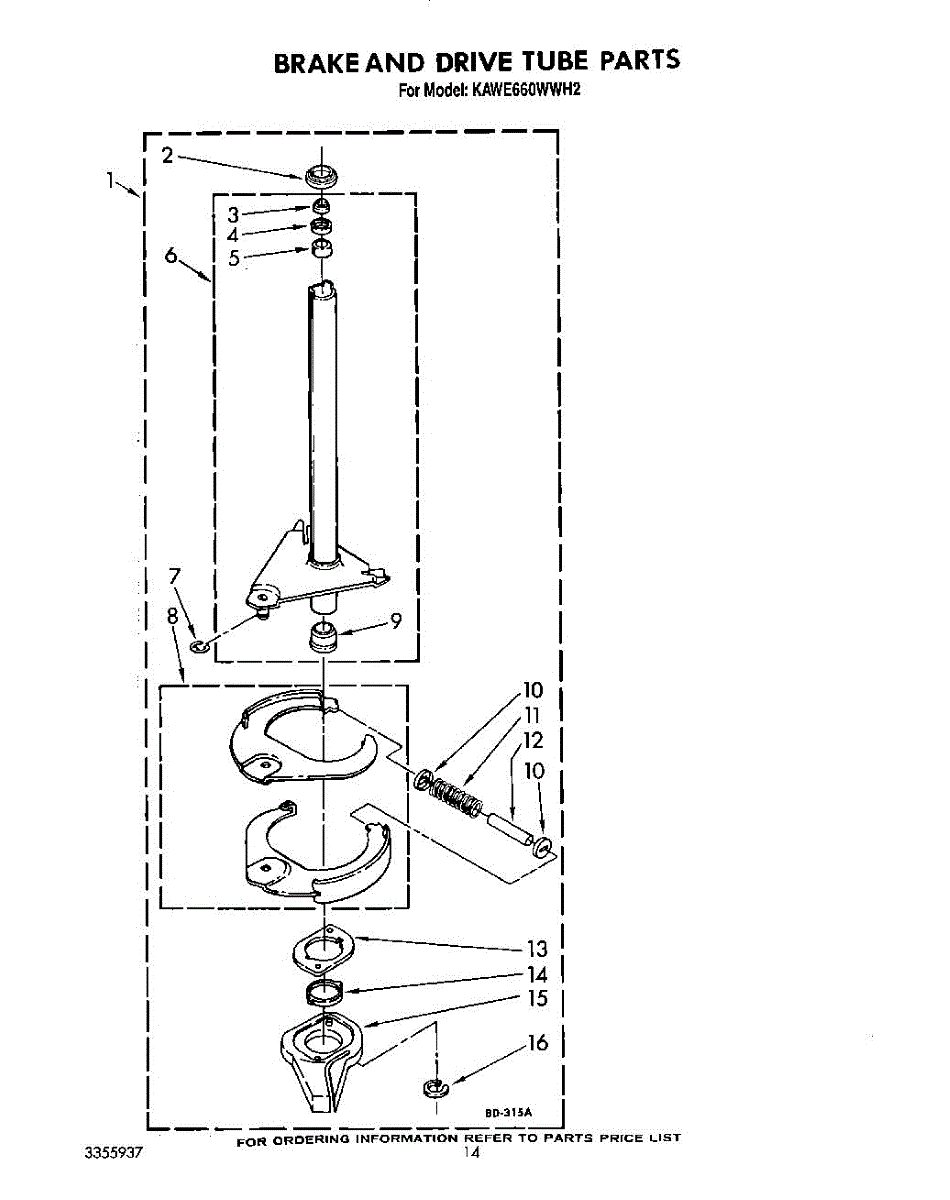 Parts for Kitchenaid KAWE660WWH2: 11 - Brake And Drive Tube Parts