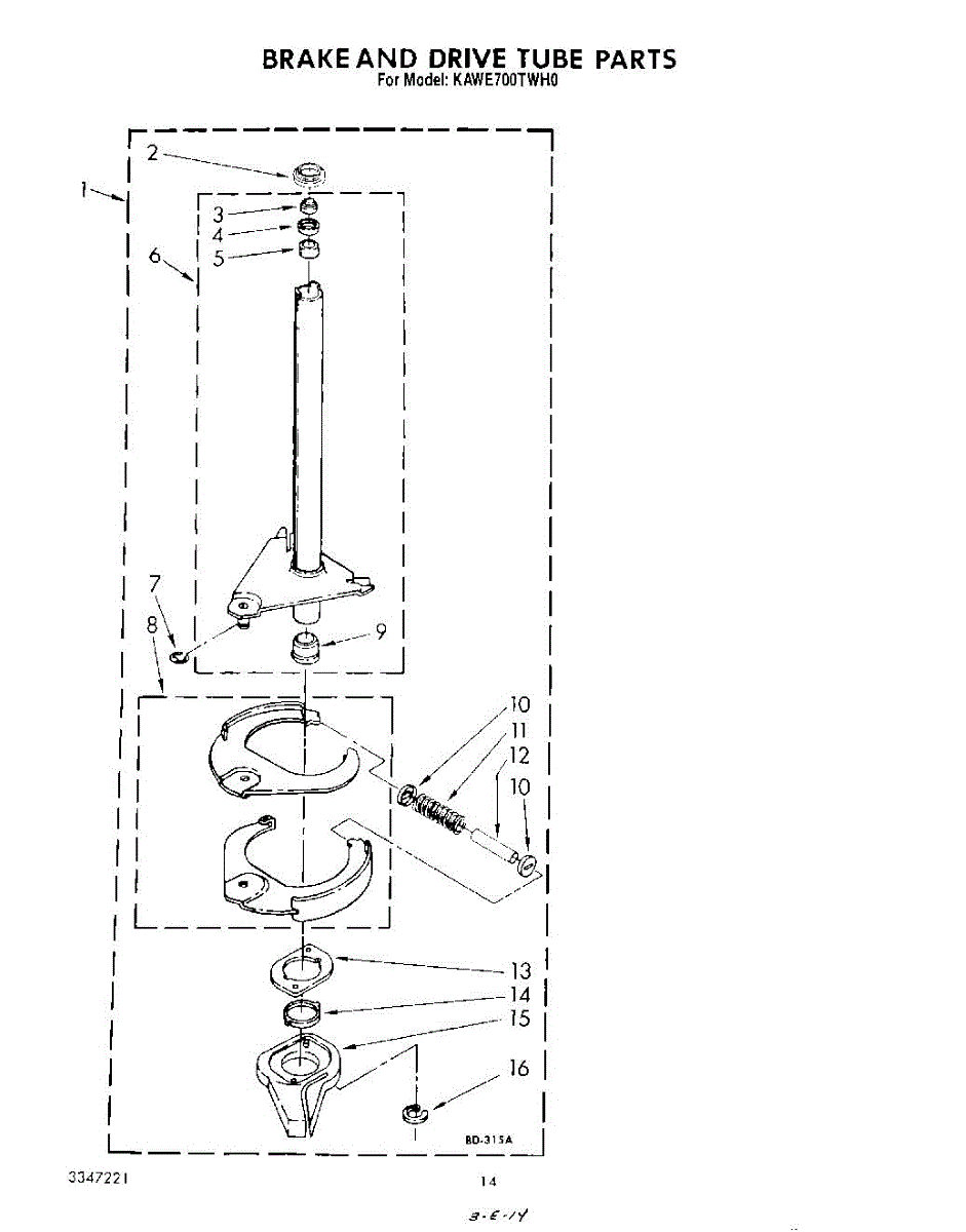 Parts for Kitchenaid KAWE700TWH0: 11 - Brake And Drive Tube Parts