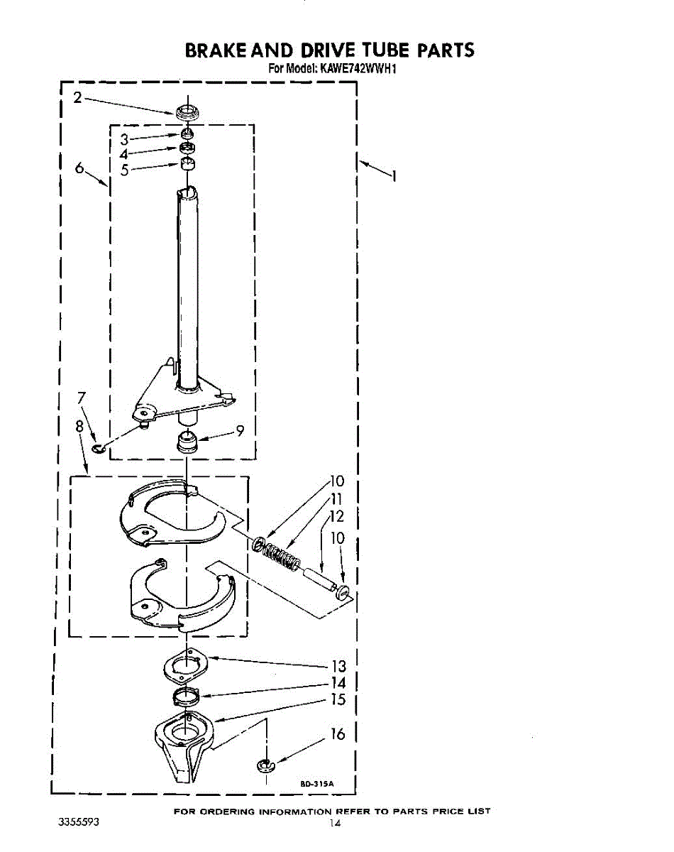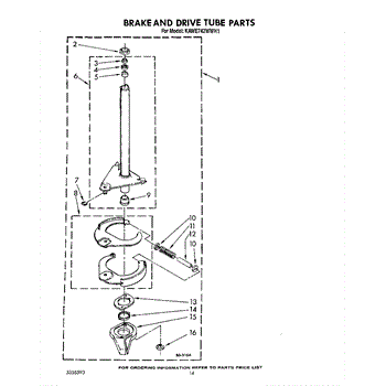 Parts for Kitchenaid KAWE742WWH1: 11 - Brake And Drive Tube Parts
