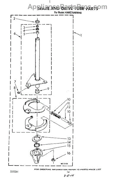 Parts for Kitchenaid KAWE764WAL0: 11 - Brake And Drive Tube Parts