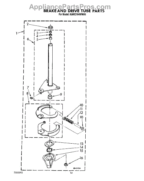 Parts for Kitchenaid KAWE764WAL1: 11 - Brake And Drive Tube Parts