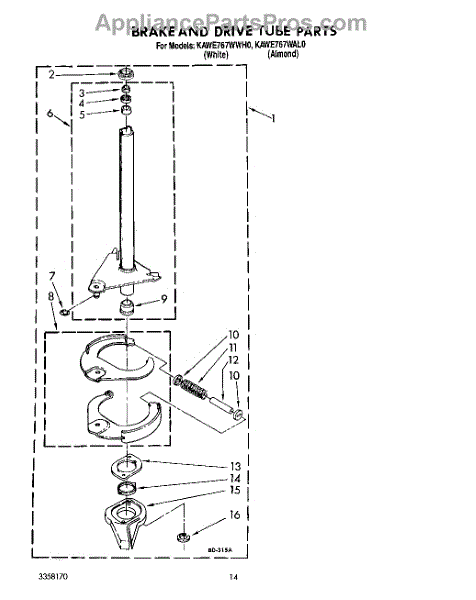 Parts for Kitchenaid KAWE767WAL0: 11 - Brake And Drive Tube Parts