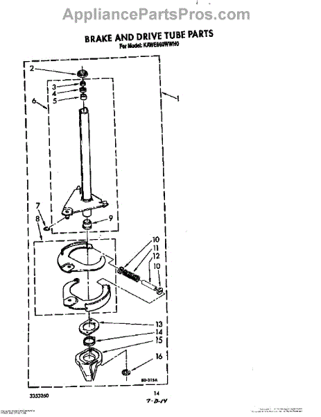 Parts for Kitchenaid KAWE860WAL0: 11 - Brake And Drive Tube Parts