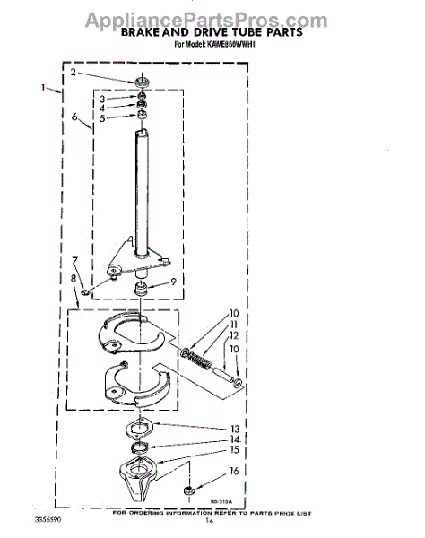 Parts for Kitchenaid KAWE860WAL1: 11 - Brake And Drive Tube Parts