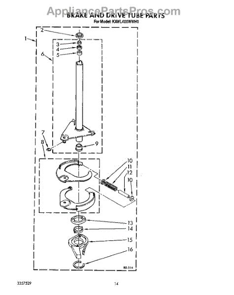 Parts for Kitchenaid KAWL400WWH0: 11 - Brake And Drive Tube Parts