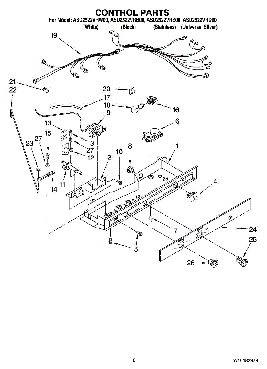 Parts for Maytag ASD2522VRB00: 11 - Control Parts