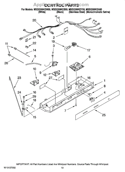 Parts for Maytag MSD2269KEA00: 11 - Control Parts