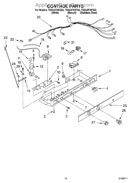 Parts for Whirlpool TS25AFXKS03: 11 - Control Parts