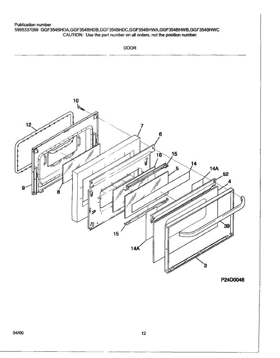 Parts for Frigidaire GGF354BHDB: 11 - Door Parts
