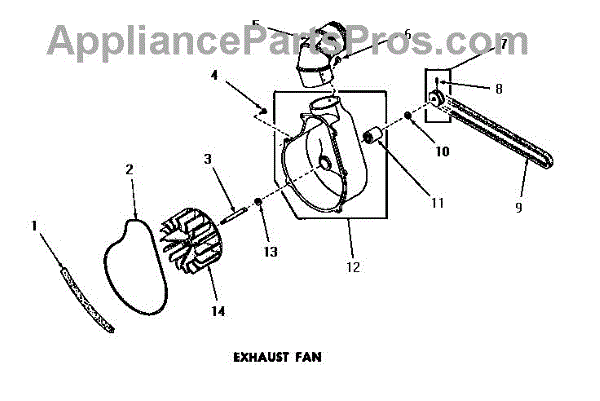Parts for Amana DE3670: 11 - Exhaust Fan Parts
