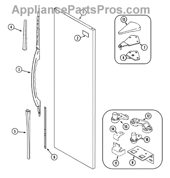 Replaces a worn or broken door closer that mounts on the refrigerator hinge. Restores smooth closing action when the original cam is cracked or damaged.