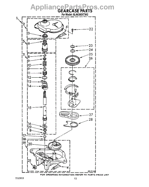 Parts for Whirlpool 6LA6300XTM2: 11 - Gearcase Parts