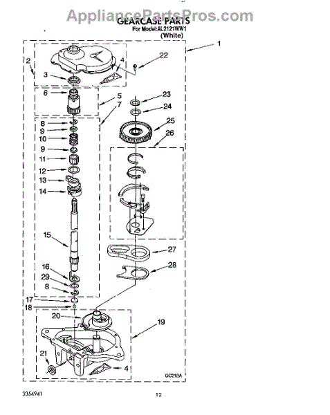 Parts for Whirlpool AL2121WW1: 11 - Gearcase Parts