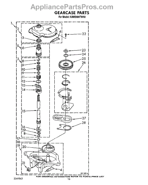 Parts for Kitchenaid KAWE900TWH0: 11 - Gearcase Parts