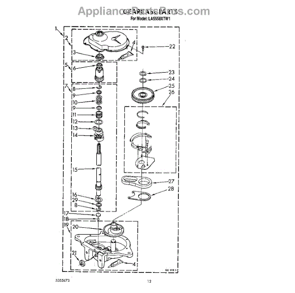 Parts for Whirlpool LA5558XTG1: 11 - Gearcase Parts