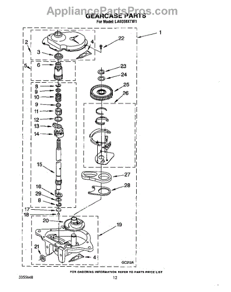 Parts for Whirlpool LA6058XTG1: 11 - Gearcase Parts