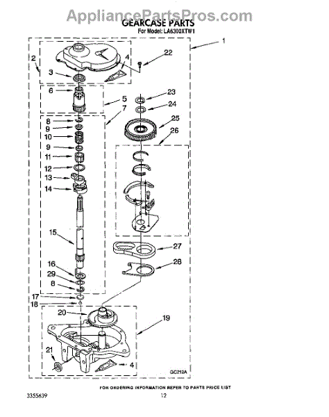 Parts for Whirlpool LA6300XTG1: 11 - Gearcase Parts