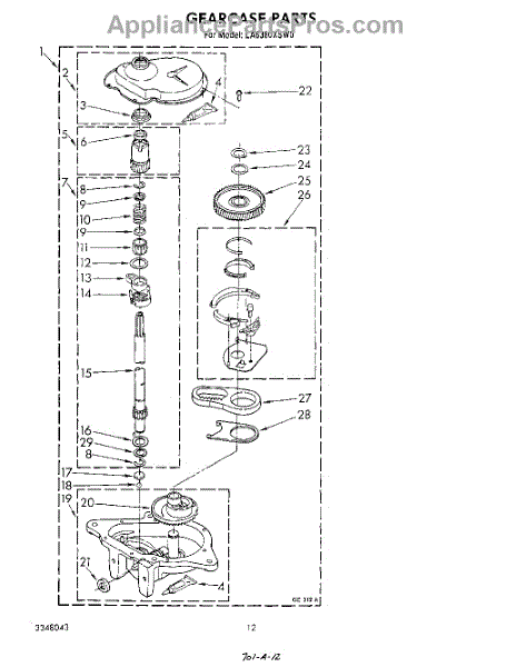 Parts for Whirlpool LA6380XSW0: 11 - Gearcase Parts