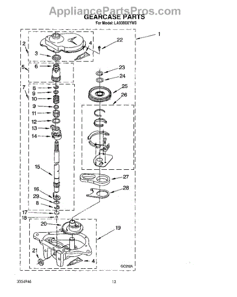 Parts for Whirlpool LA9300XYG0: 11 - Gearcase Parts