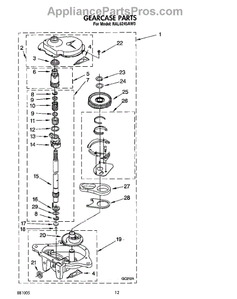Parts for Whirlpool RAL6245AL0: 11 - Gearcase Parts