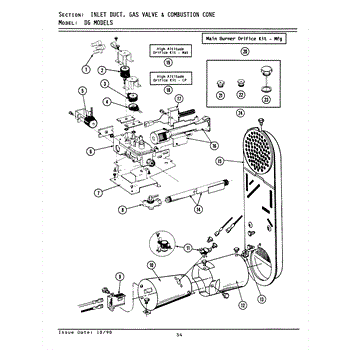 Parts for Maytag GDG27CS: 11 - Inlet Duct, Gas Valve & Combustion Cone Parts